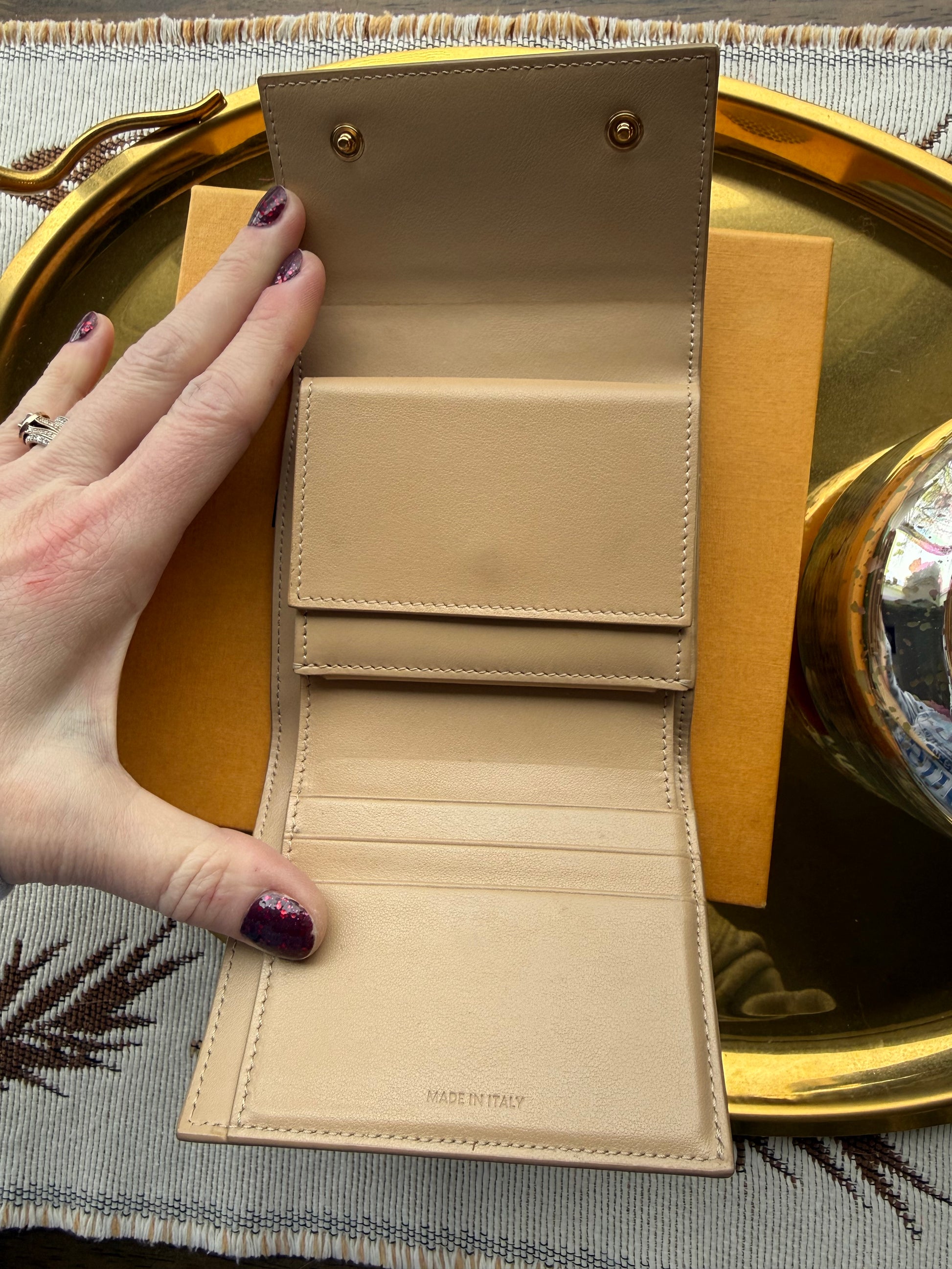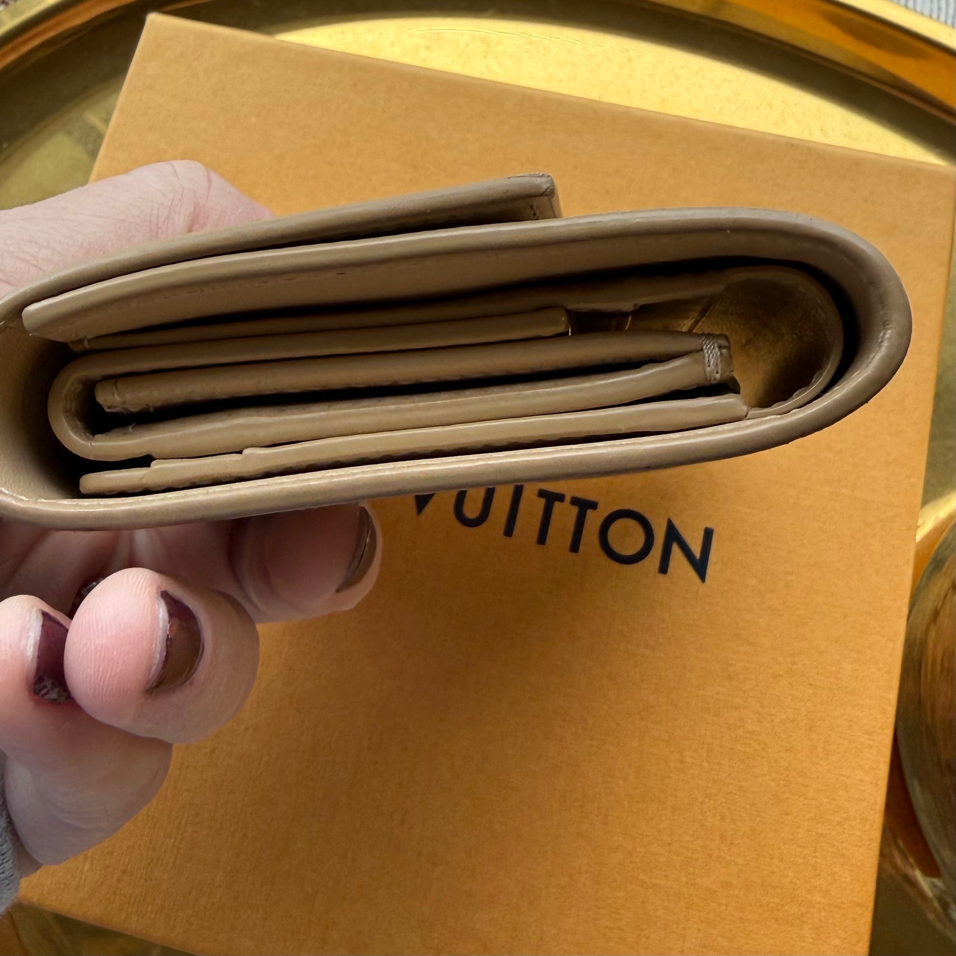 Authentic Preloved 2020s Celine Trifold Wallet in Beige Calfskin