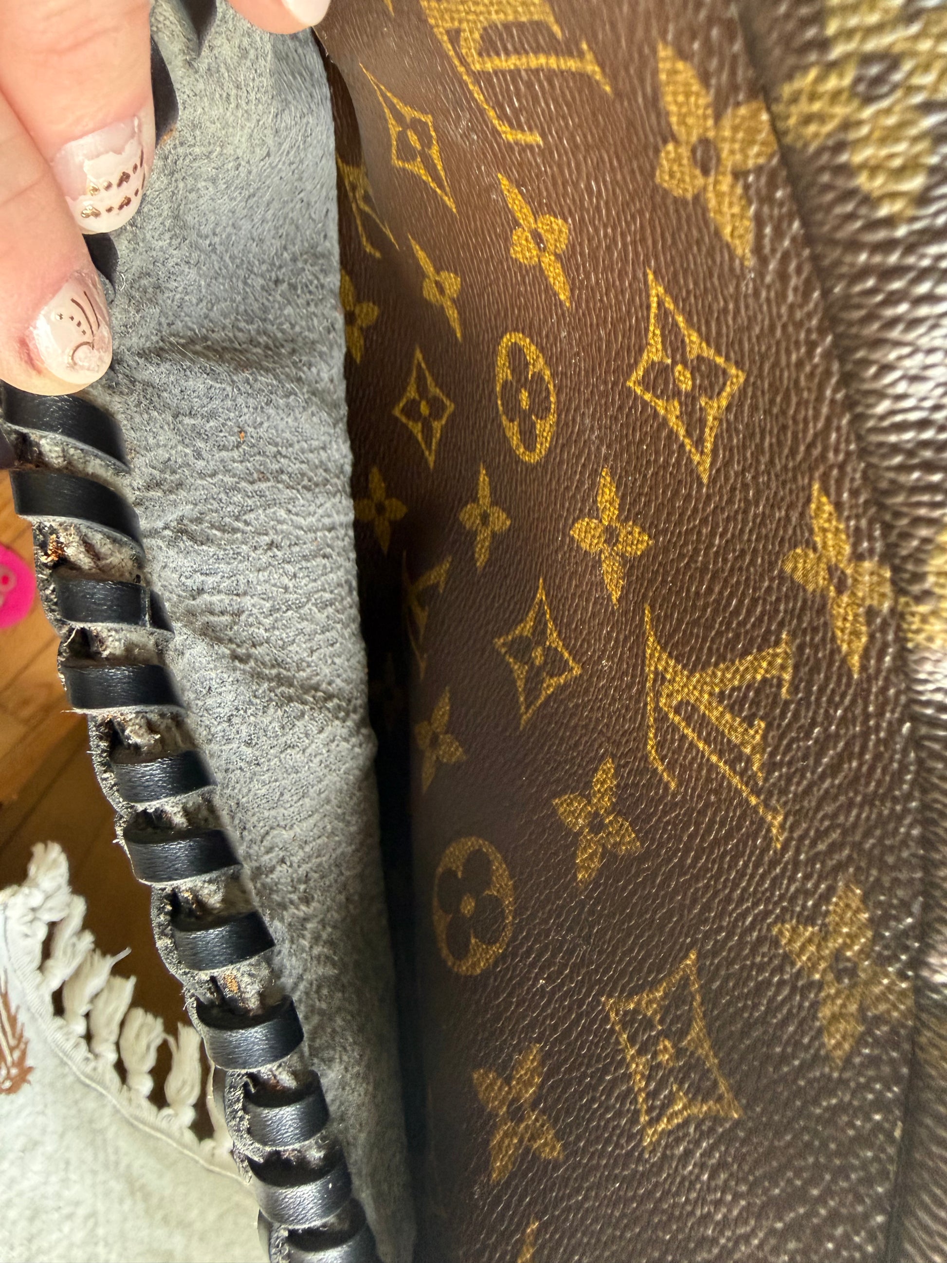 - peeling in inside pocket; has been stripped