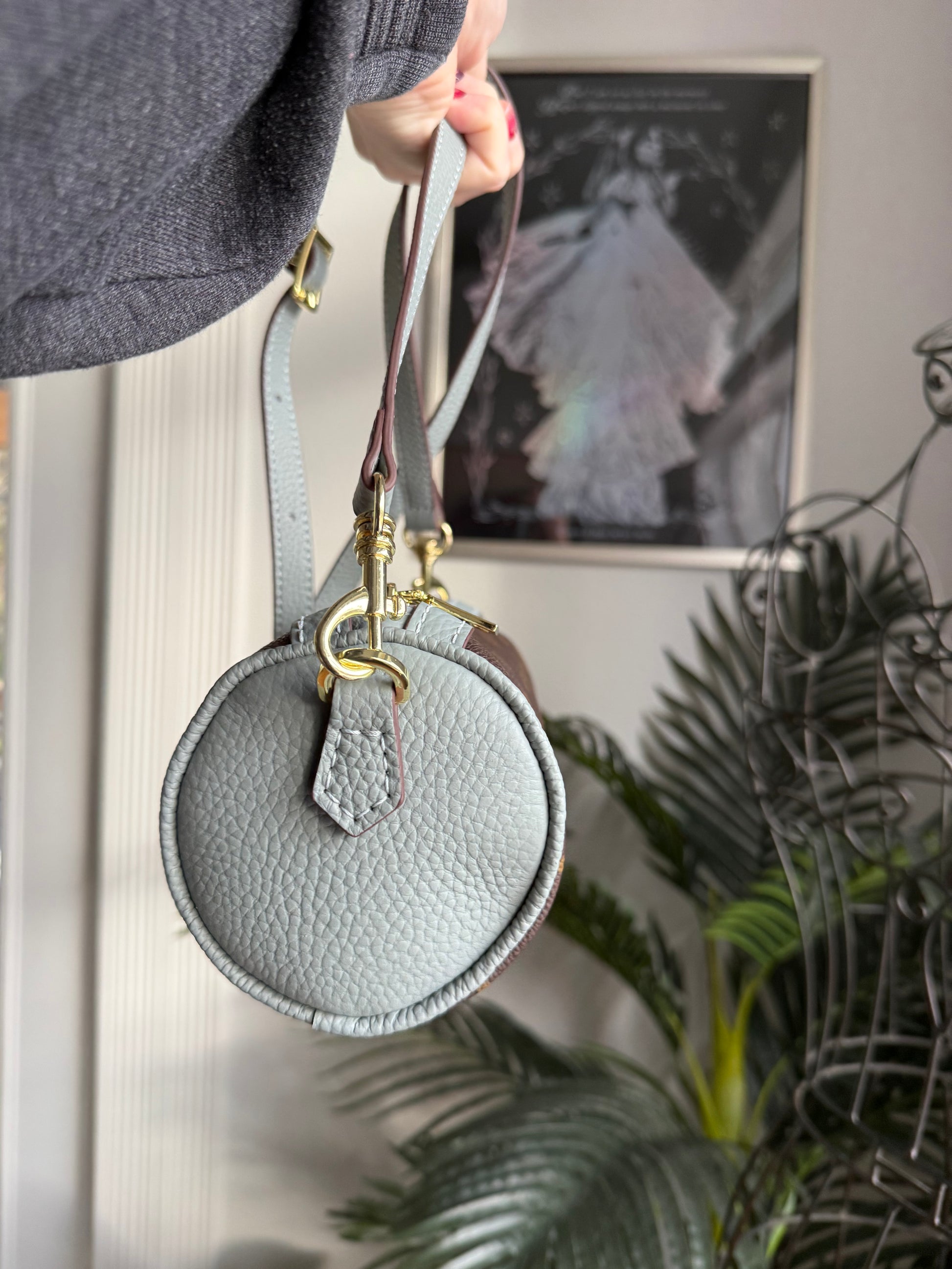 { AIMEE } Handmade Barrel Bag in Dusty Blue + Mono
