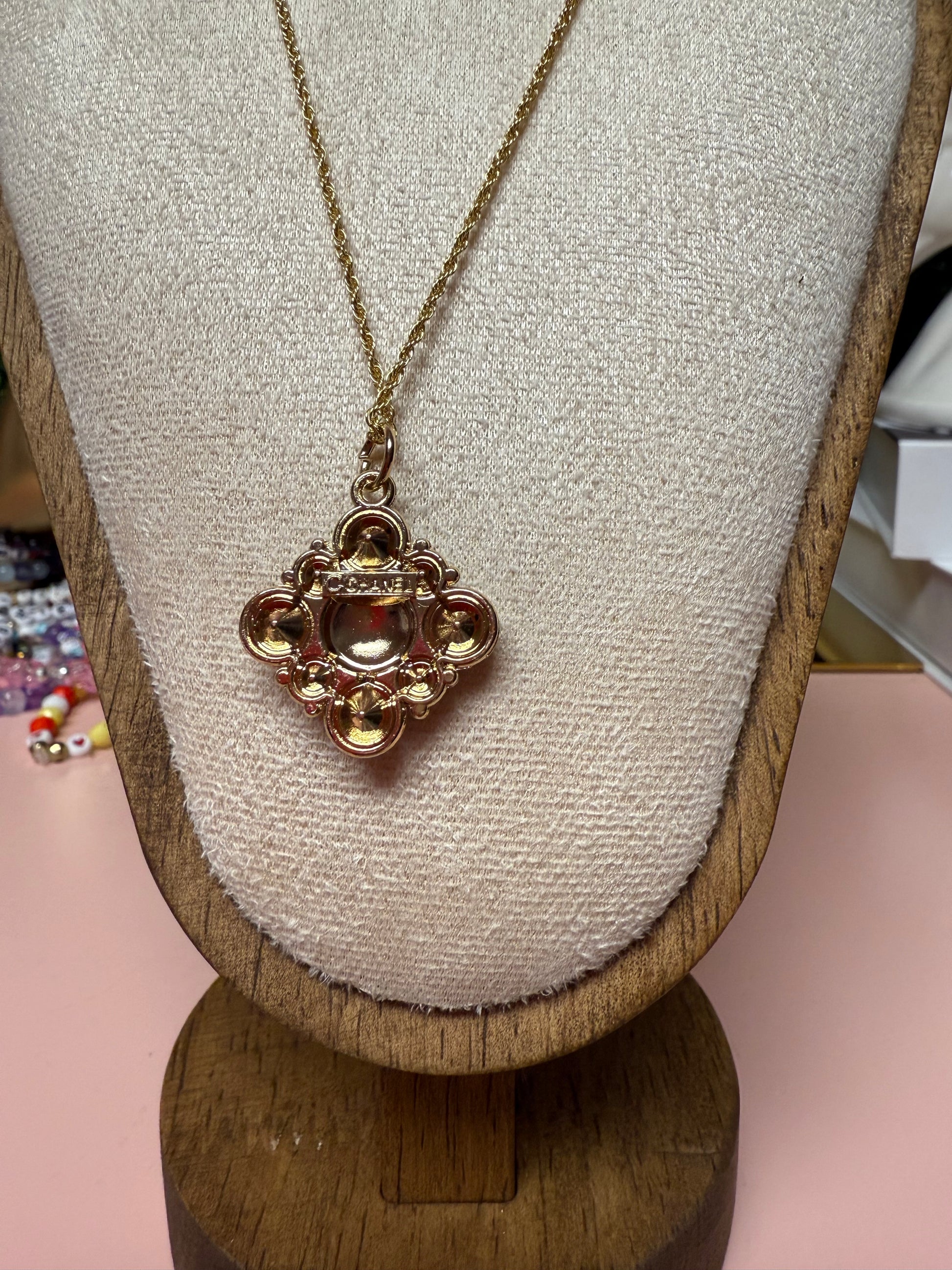 Due to the nature & availability of vintage designer charms, each necklace is one-of-a-kind and only one of each is available. Items are pre-loved and ethically sourced. Please note that these vintage buttons and charms may have slight wear or surface scratches as they are vintage and pre-loved. Each charm is salvaged from a designer bag - generally these were zipper pulls, sewn on tags, or bag charm components. ALL SALES ARE FINAL.