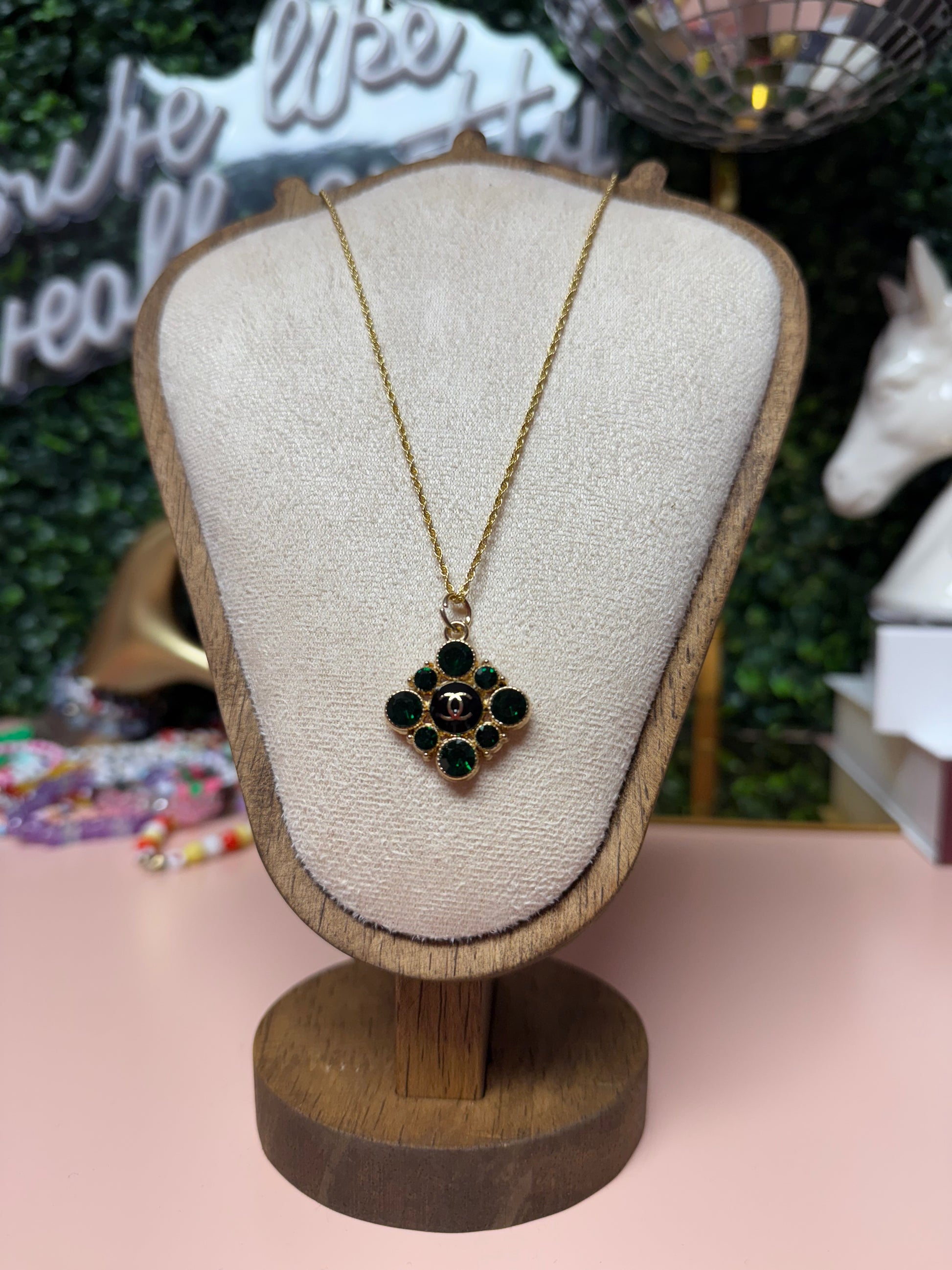 IVY Vintage Upcycled Lux CC Charm Necklace in Green