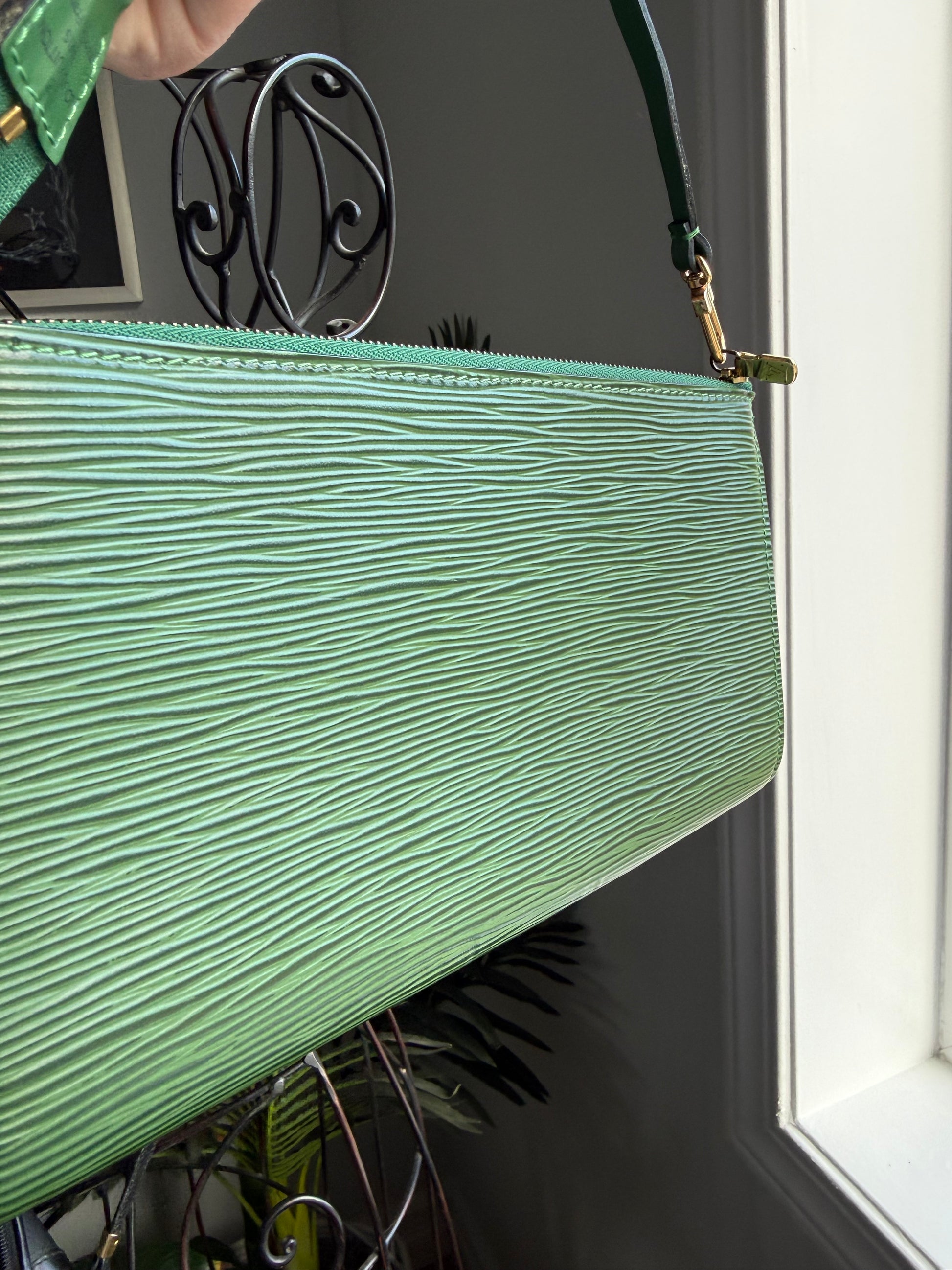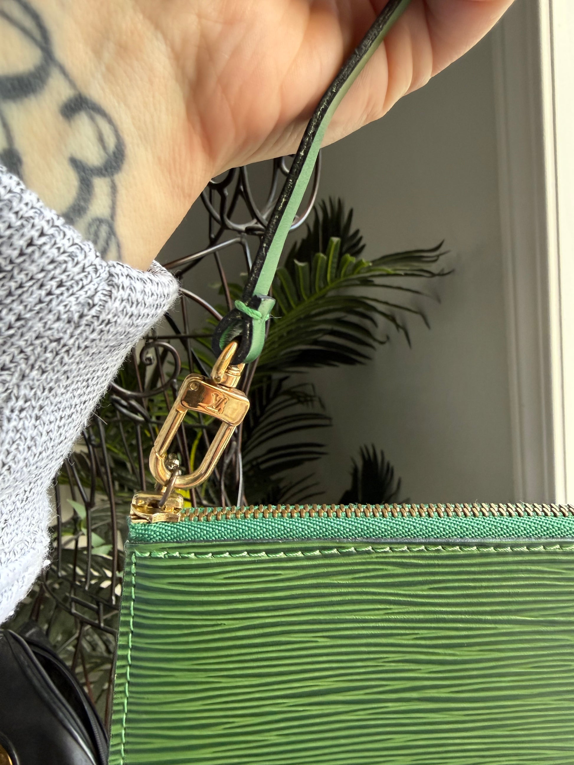 Authentic preloved vintage 1996 LV Pochette Accessoires in green epi leather