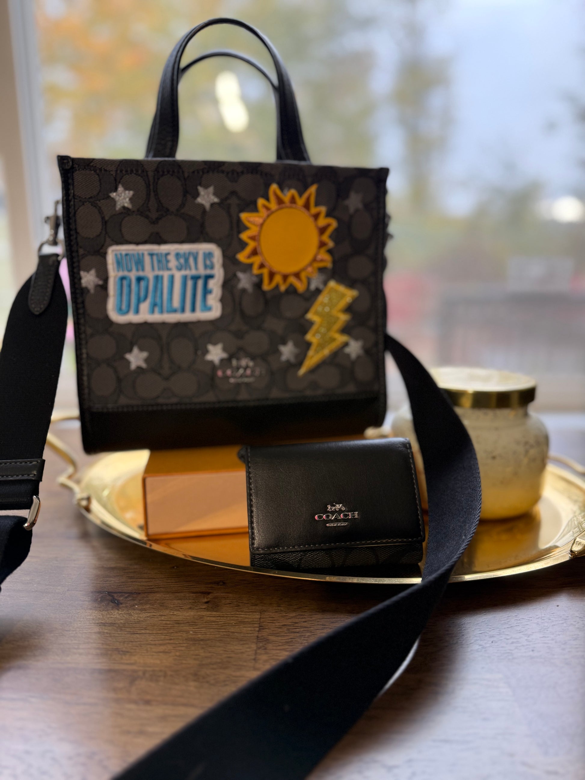 Authentic preloved Coach branded canvas medium size tote with crossbody strap and wallet