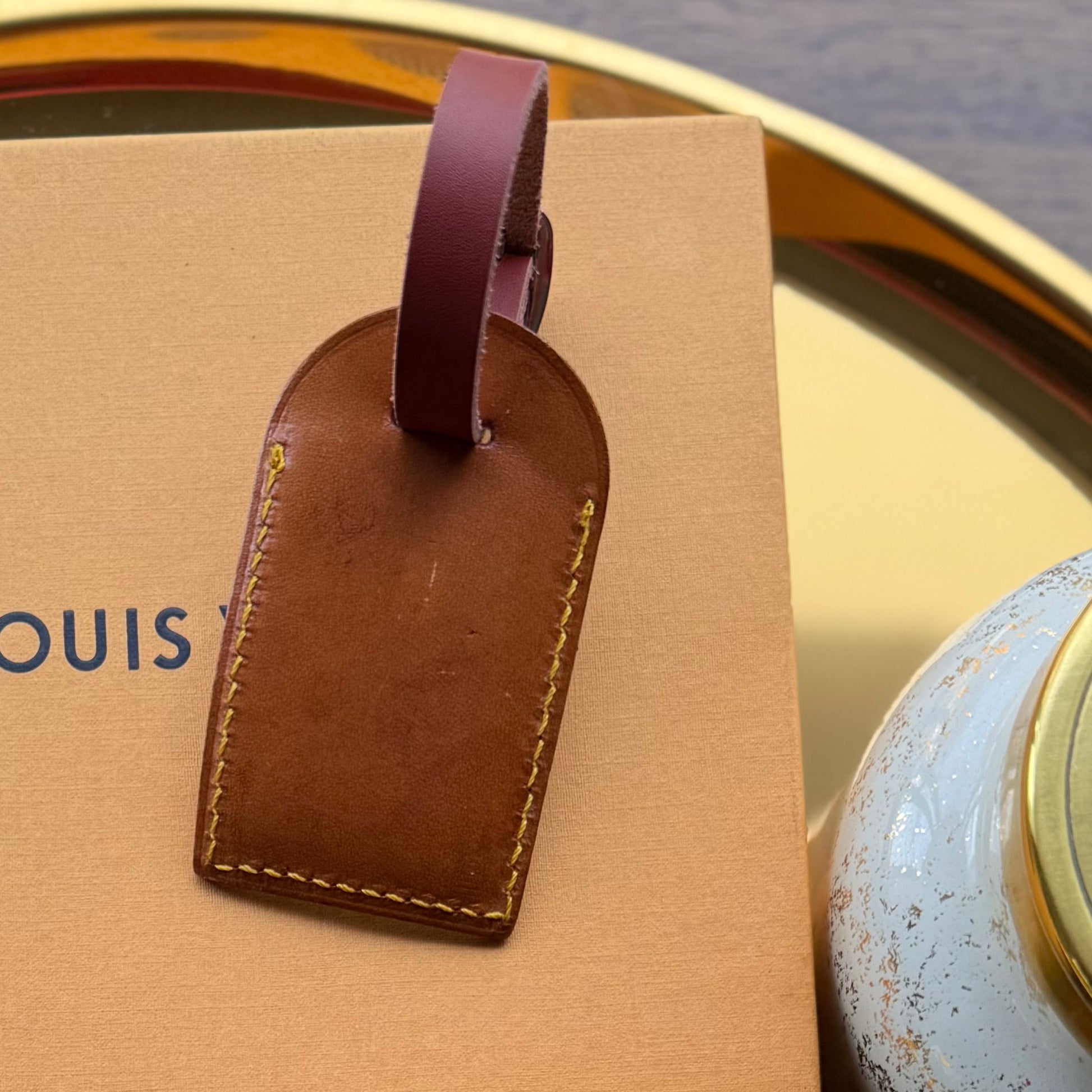 Handpainted and sealed Authentic preloved vintage LV keepall luggage tag bag charm. Leather shows lights distressing. Comes with unbranded leather strap to easily attach to your handbag or luggage.